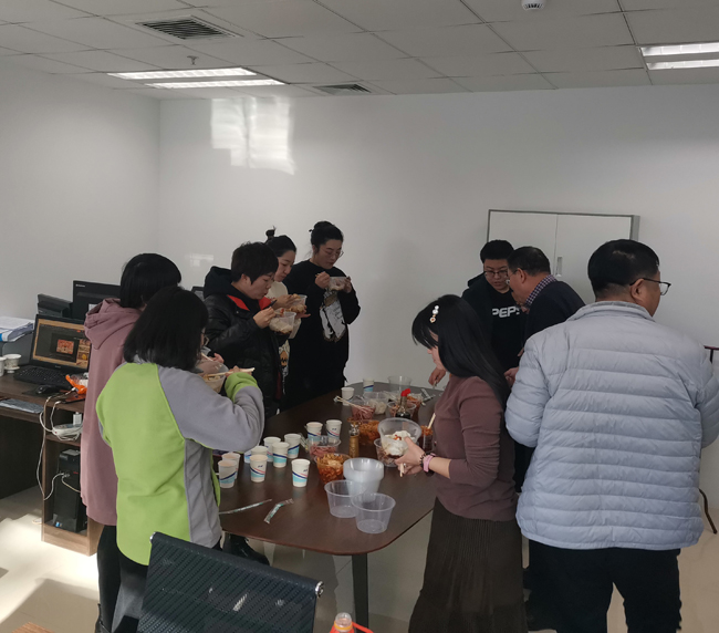 盡管中心目前沒(méi)有食堂,不具備大家一起包餃子的條件,但中心員工參加活動(dòng)的熱情依然高漲,有的人負(fù)責(zé)采購(gòu),有的人從家里帶鍋,有的人幫忙煮餃子,現(xiàn)場(chǎng)熱鬧一片。當(dāng)大家吃上了熱騰騰的餃子時(shí),每個(gè)人都在這寒冷的冬至感受到了大家庭的溫暖。