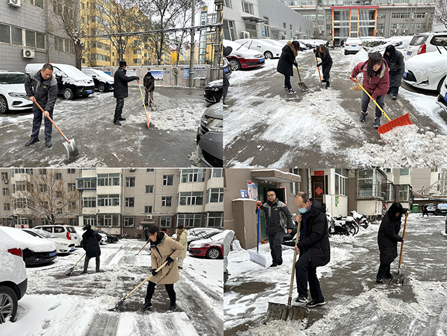 一大早,公司職工不畏嚴寒、默契配合,齊心協(xié)力的清掃院內積雪,盡管雪后冰冷刺骨,但絲毫沒有影響職工們的鏟雪熱情,大家手持鐵鍬、拿起掃帚,發(fā)揚不怕苦,不怕累的精神,與寒風搏斗,和積雪抗爭,熱情高漲的清雪場面贏得了職工、家屬的一致好評。在大家熱情積極地共同努力下,經過一個多小時的奮戰(zhàn),路面積雪已全部清理完畢,消除了惡劣天氣帶來諸多不便,有效保障了職工和家屬們的出行安全。