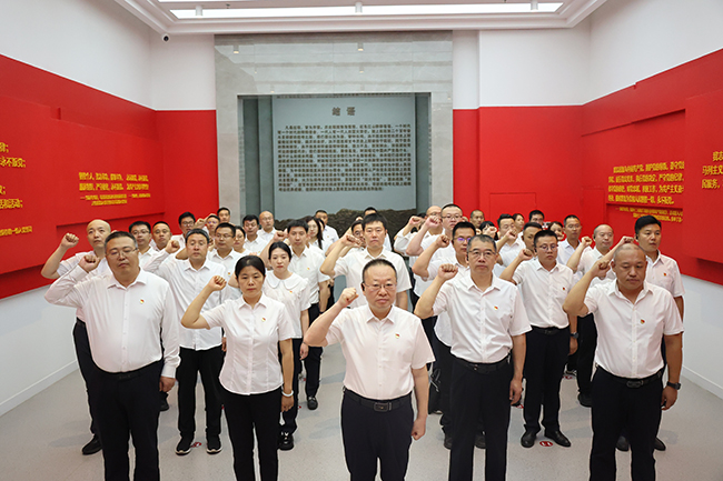 活動中,全體黨員干部面向黨旗,莊嚴(yán)舉起右拳,重溫入黨誓詞。鏗鏘有力的誓言在展廳內(nèi)回蕩,既表達(dá)了大家堅守清廉本色的堅定信念,也彰顯了不忘初心、牢記使命的政治擔(dān)當(dāng)。