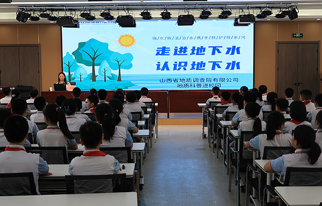 為深入學習貫徹習近平生態(tài)文明建設重要論述精神,發(fā)揮公司黨員先鋒模范作用,在第三十個“世界環(huán)境日”到來之際,山西省地質調查院有限公司應校方邀請,組織青年黨員志愿者來到太原市后小河小學組織開展以“走進地下水, 認識地下水”為主題的地質科普進校園活動。學校安排部分高年級“護水小衛(wèi)士”現場聽講并參與互動,其余全部師生在各自班級內通過直播的形式觀看講座。