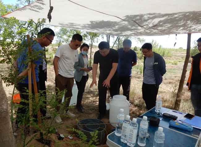 監(jiān)理專家組通過(guò)室內(nèi)聽取匯報(bào)、檢查資料和野外實(shí)地考察,全面了解項(xiàng)目進(jìn)展情況,著重考察項(xiàng)目近期完成的物探、探井以及水文地質(zhì)試驗(yàn)等工作。