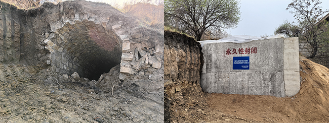 該項(xiàng)目作為生態(tài)環(huán)境部水污染防治儲(chǔ)備庫(kù)重點(diǎn)項(xiàng)目,自2023年2月17日開工建設(shè)以來,在老窯水水文地質(zhì)改造方面已順利完成地裂縫和地面塌陷填埋、廢棄井筒回填、廢棄鉆孔封堵以及廟溝鋪底防滲工程施工,水文地質(zhì)改造工程有效阻斷了老窯水補(bǔ)給通道,減少了降雨入滲及地表徑流對(duì)采空區(qū)老窯水的補(bǔ)給,經(jīng)過兩年的持續(xù)監(jiān)測(cè),溢流點(diǎn)日均總溢流量相比去年削減了50%以上,風(fēng)摩亭溢流點(diǎn)已經(jīng)斷流3個(gè)月,治理效果符合同要求。