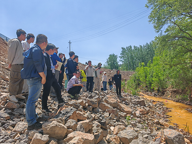 考察期間,團(tuán)隊(duì)先后實(shí)地調(diào)研了躍進(jìn)煤礦巖溶鉆孔串層污染點(diǎn)、露天1號積水坑治理點(diǎn)、老窯水溢流點(diǎn)和巖溶滲漏段等關(guān)鍵區(qū)域。老窯水治理項(xiàng)目負(fù)責(zé)人詳細(xì)介紹了當(dāng)前老窯水污染的主要問題及已采取的修復(fù)治理措施,并針對老窯水治理體系、巖溶含水層結(jié)構(gòu)、地下水污染遷移等議題展開討論。