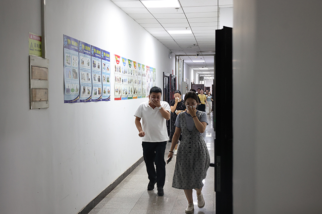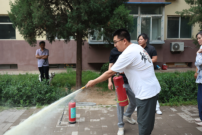 為確保演練成效,中心事前制定了周密的方案,明確現(xiàn)場應(yīng)急救援小組分工,下設(shè)報警聯(lián)絡(luò)、醫(yī)療救護、滅火行動、疏散引導(dǎo)四個工作組。警報拉響一刻,安全生產(chǎn)部率后勤引導(dǎo)組迅速抵達現(xiàn)場,辦公區(qū)員工立即反應(yīng):濕毛巾掩口鼻、壓低身姿,沿著預(yù)定路線快速有序疏散至室外安全點。與此同時,地礦小區(qū)中心廣場模擬火情燃起。參訓(xùn)人員在專業(yè)培訓(xùn)員指導(dǎo)下,掌握“提、拔、握、壓”關(guān)鍵要領(lǐng),手持滅火器對準(zhǔn)火源根部精準(zhǔn)噴射,迅速控制了“火勢”,并在指導(dǎo)下輪番實操。