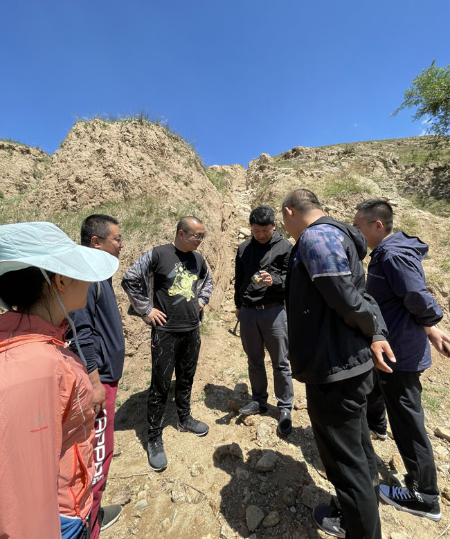 活動(dòng)中,礦產(chǎn)中心副主任、“右玉金礦項(xiàng)目”負(fù)責(zé)人陳志方向大家細(xì)致講解了該項(xiàng)目立項(xiàng)、設(shè)計(jì)和實(shí)施的進(jìn)度,與大家共同交流了該地典型的地質(zhì)構(gòu)造現(xiàn)象以及項(xiàng)目部近期的工作重點(diǎn)。與大家分享了自己參加工作以來(lái),一直扎根于野外一線,參與完成數(shù)項(xiàng)國(guó)家、省級(jí)重點(diǎn)項(xiàng)目的心得體會(huì)。在野外實(shí)訓(xùn)過(guò)程中,帶領(lǐng)大家到野外工區(qū)實(shí)地踏勘,對(duì)地層構(gòu)造、礦床成因等進(jìn)行了重點(diǎn)講解。