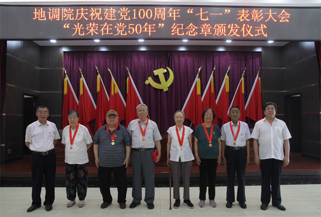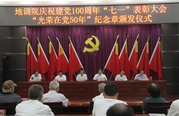 為慶祝中國共產(chǎn)黨成立100周年,6月28日,地調(diào)院召開慶祝建黨100周年“七一”表彰大會(huì)暨“光榮在黨50年”紀(jì)念章頒發(fā)儀式,會(huì)議由院紀(jì)委書記陳巖主持,院領(lǐng)導(dǎo),6位黨齡50年以上的老黨員,機(jī)關(guān)全體黨員,各支部書記,各中心、部室負(fù)責(zé)人,受表彰的個(gè)人及2021年上半年新接收的預(yù)備黨員等近百人參加。