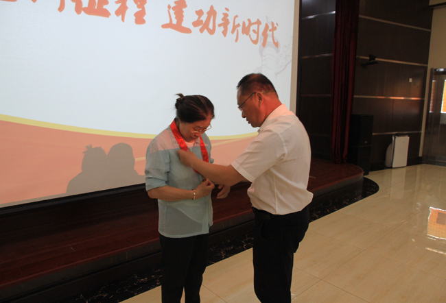 會議在莊嚴的國歌中拉開帷幕。公司黨委書記、董事長李愛民為到場的老黨員張亮瑜頒發(fā)“光榮在黨50年”紀念章,對老黨員們?yōu)辄h的事業(yè)做出的重要貢獻表示感謝并致以崇高敬意。