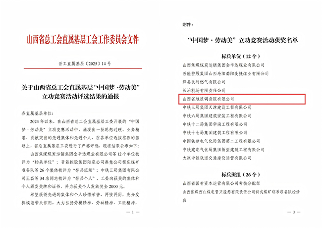 近日,山西省總工會(huì)直屬基層工委公布“中國夢·勞動(dòng)美”立功競賽評選結(jié)果,地調(diào)院有限公司憑借在地質(zhì)勘查與生態(tài)保護(hù)領(lǐng)域的突出貢獻(xiàn),獲評“標(biāo)兵單位”稱號,彰顯了國有公益類科技型企業(yè)的責(zé)任擔(dān)當(dāng)與創(chuàng)新實(shí)力。