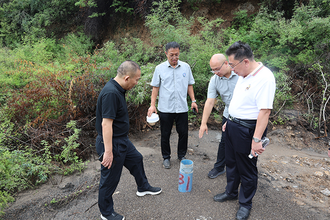 2025年8月21日,山西地質(zhì)集團(tuán)有限公司黨委專職副書記、副董事長、工會(huì)主席杜玉河,工會(huì)專職副主席張建民一行,赴山西省地質(zhì)調(diào)查院有限公司承擔(dān)的呂梁市交口縣西莊村老窯水污染防控與修復(fù)治理項(xiàng)目現(xiàn)場(chǎng),看望慰問奮戰(zhàn)在生態(tài)治理一線干部職工,并開展汛期安全生產(chǎn)檢查工作。地調(diào)院有限公司黨委副書記、副董事長、總經(jīng)理韓武波,黨委專職副書記、副董事長、工會(huì)主席陳巖陪同前往。